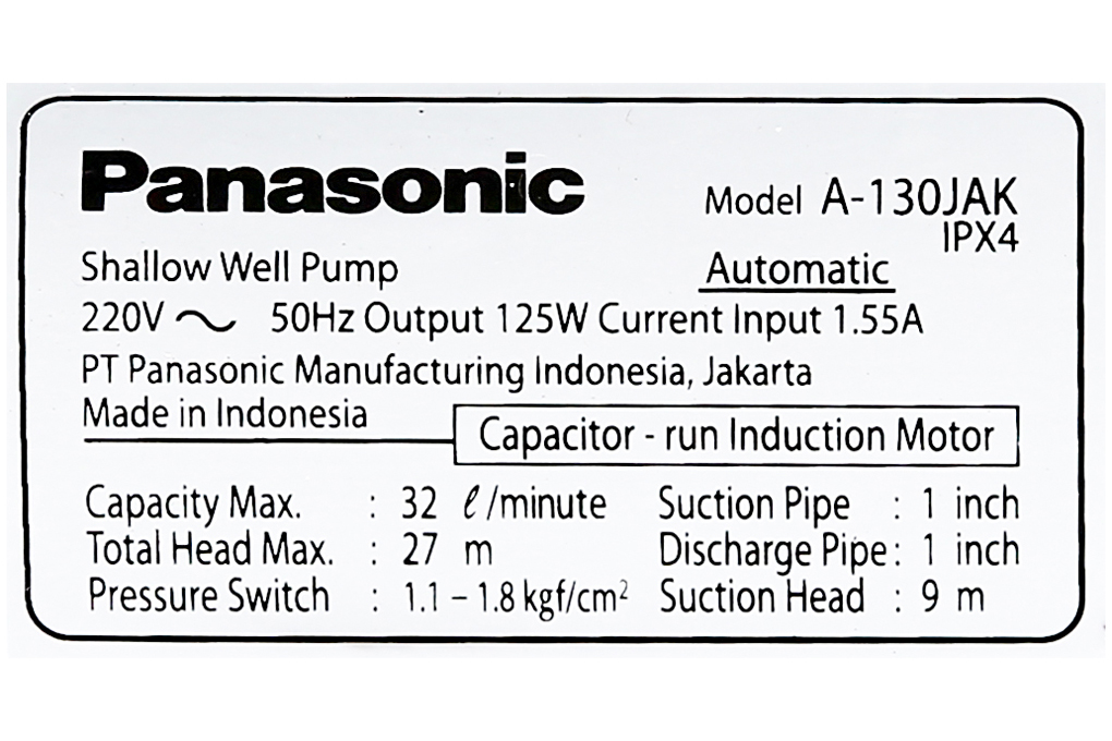 Panasonic A-130JAK 125W được hãng trang bị chuẩn chống nước IPX4 chịu được áp lực nước bắn ở mọi vị trí, giúp bảo vệ động cơ bên trong một cách an toàn nhất.