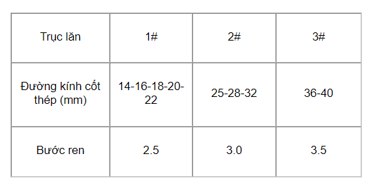 * Thông số kỹ thuật của máy cán ren cốt thép HGS-40F