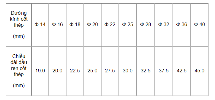 2. Không được tạo ren cho cốt thép khi không có chất lỏng làm mát.