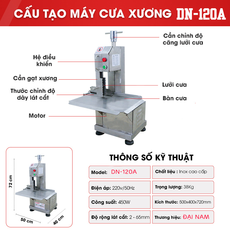 Trong bài viết này Điện máy ALT Việt Nam xin giới thiệu dòng máy cưa xương DN-120A, đây được coi là dòng máy cưa xương có giá thành hợp lý mà chất lượng vượt trội, chuyên dụng dành cho các cơ sở cưa số lượng vừa phải.
