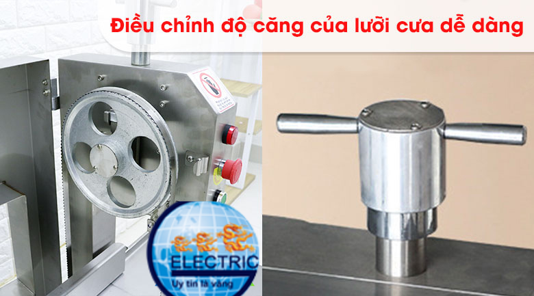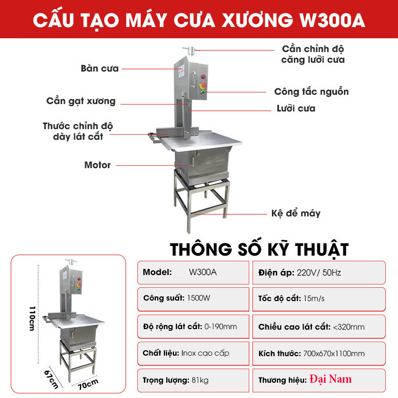 Thuộc dòng máy xưa xương công nghiệp lớn nhưng thiết kế máy rất gọn gàng, không làm tốn nhiều diện tích. Máy cưa xương W300A có thêm kệ để máy nên sử dụng sẽ tiện lợi hơn rất nhiều.