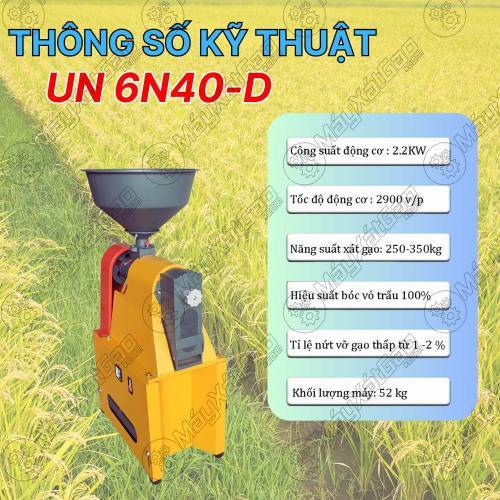 Máy xát gạo mini liên hoàn UN 6N40‑D là thiết bị xay xát gạo nhỏ gọn, phù hợp cho hộ gia đình, người trồng lúa quy mô nhỏ và cơ sở sản xuất nhỏ. Sản phẩm có thiết kế liên hoàn, giúp quy trình xát gạo diễn ra hiệu quả hơn, đáp ứng nhu cầu sử dụng thường xuyên.