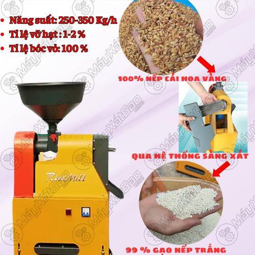 Máy có khả năng xát sạch vỏ trấu và cho hạt gạo trắng đều, tỷ lệ gạo gãy vỡ thấp. Thiết kế liên hoàn giúp tăng hiệu suất xay xát so với máy đơn lẻ, phù hợp với nhu cầu sử dụng gạo thường xuyên tại gia đình hoặc cơ sở nhỏ.
