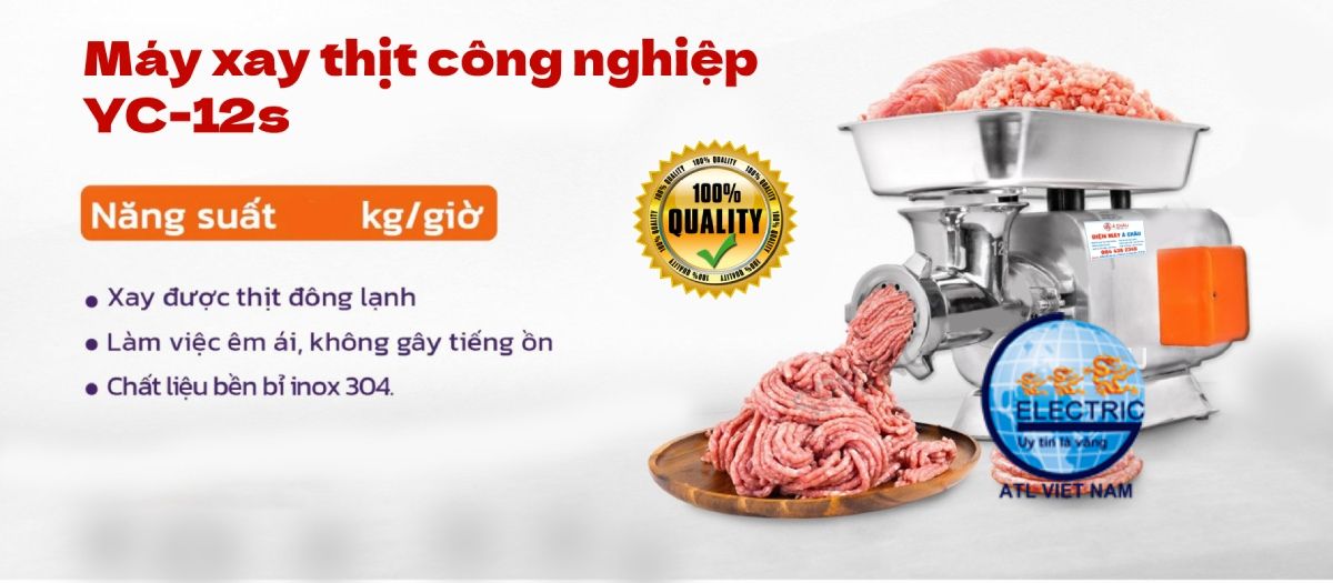 Máy xay thịt công nghiệp YC-12s giúp việc chuẩn bị hoặc chế biến thực phẩm trở nên dễ dàng. Thích hợp cho các doanh nghiệp chế biến thịt với công suất lớn, sử dụng được liên tục, lâu dài. Có thể xay thịt đông lạnh (Ở nhiệt độ không thấp hơn -5 độ c). Máy không rung lắc. Xay được mỗi giờ lên đến 180 kg.