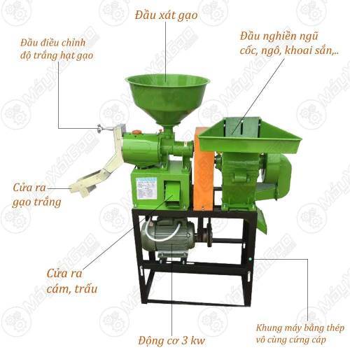 Máy xay xát lúa gạo mini 2 chức năng UN 6N40‑9FQ20 phù hợp cho: