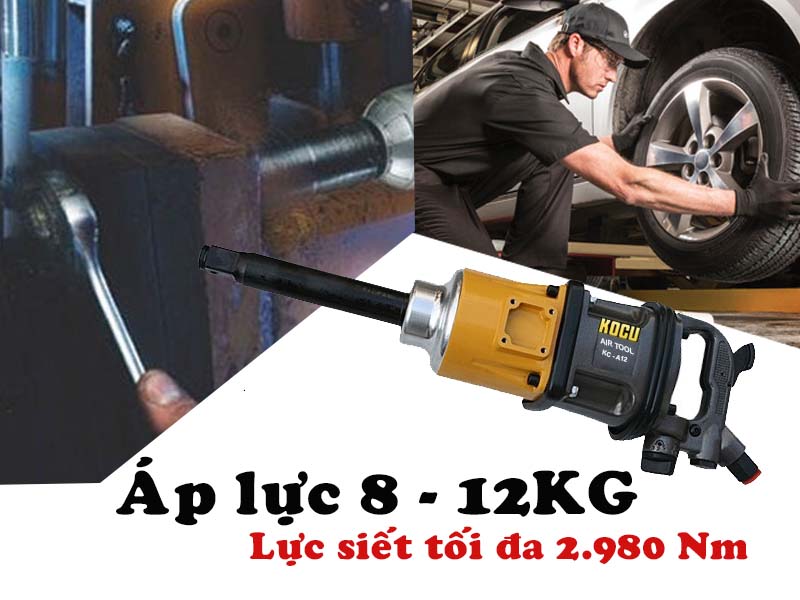 Kocu KC-A12 cho khả năng vặn bu lông có đường kính 48mm nên được sử dụng phổ biến trong các garage ô tô và xưởng sản xuất máy móc.